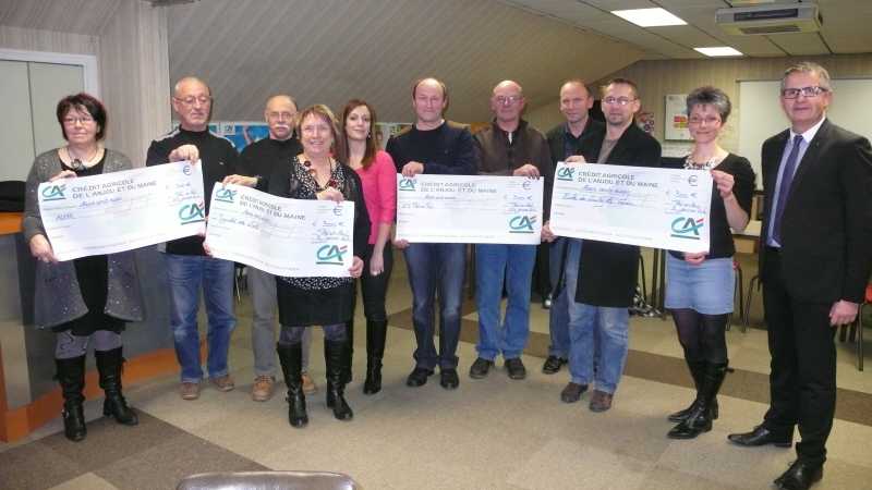 Vendredi soir, Patrice Bellay, directeur et Michel Blanchard, président de la caisse locale du Crédit Agricole ont convié les représentants de La Maison des Associations, l’ADMR, l’US Pré-en-Pail et l’association des parents d’élèves de l’école de Neuilly-le-Vendin pour la remise d’un chèque de 300 €. Ces quatre associations qui ont pu bénéficier du fond d’animation locale pour soutenir un de leur projet. L’ADMR a organisé une animation intergénérationnelle à Noël, La Maison des Associations a mis en place de la marché de Noël qui a eu lieu le 8 décembre dernier, l’APE de Neuilly le Vendin a acheté deux ordinateurs pour l’école et l’US Pré-en-Pail a organisé un grand tournoi de foot en salle qui s’est déroulé le 4 janvier dernier.