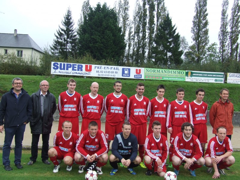 Dimanche, l’équipe B de l’US Pré-en-Pail, actuellement première du championnat de 4e division a reçu son nouveau maillot remis par Philippe Bourdais, directeur du magasin Super U en présence de Joël Thireau, maire adjoint chargé des activités sportives.