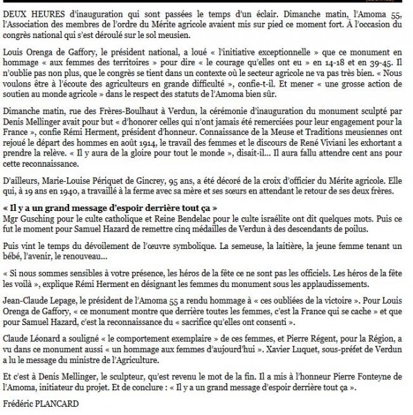 Participation de notre exposition commune au congrès de l'AMOMA à VERDUN à l'occasion de l'inauguration du premier et seul monument européen dédié au travail des femmes pendant les guerres.