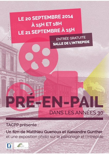 Pré-en-Pail dans les années 30, un film documentaire réalisé dans le cadre des journées du Patrimoine. Ce projet est  réalisé en collaboration avec l’association Traditions et Actions Culturelles au Pays de Pail avec le soutien de la mairie et du Crédit Agricole. Le film retrace la vie du village dans les années 30 à partir de films tournés à l'époque par un cinéaste amateur  mais Matthieu Guenoux et Alexandre Gunther, monteur, ont souhaité enrichir le document par un travail de recherche sur le cinéma amateur, le patronage et sur les  activités de l’Intrépide, structure multi-activité créée à cette époque. Ainsi, le film est ponctué de témoignages de spécialistes, aujourd’hui âgées, qui dans leur enfance ont connu les activités du Patronage et de l’Intrépide. Les élèves de CM2 de  l’école primaire publique ont également participé à ce film. En effet, des séquences du film leur ont été présentées en juin dernier et leurs réactions ont été filmées. Pour connaître l'origine des archives vidéos des années 30, rendez-vous sur la page: http://www.tacpp.fr/47+origine-des-archives-videos-presentees-sur-le-site.html