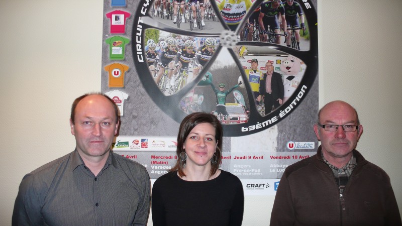 Le maire Denis Geslain, la secrétaire de mairie Aurélie Grangeré et Joel Thireau, maire adjoint délégué aux sports travaillent depuis plusieurs semaines pour accueillir dans les meilleures conditions le circuit cycliste de la Sarthe pour la 6e année consécutive à Pre-en-Pail